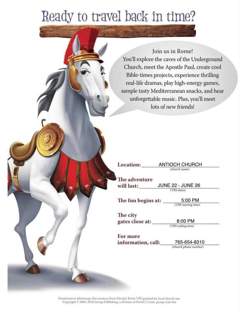Join us in Rome June 22nd to June 26th! You'll explore the caves of the Underground Church, meet the Apostle Paul, create cool Bible-times projects, experience thrilling real-life dramas, play high-energy games, sample tasty Mediterranean snacks, and hear unforgettable music. Plus you'll meet lots of new friends!